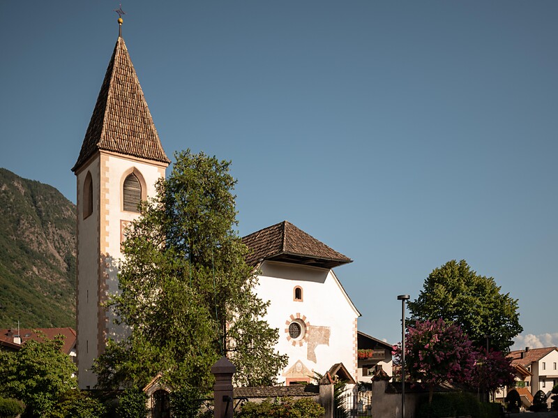 Consacrata a Giovanni Battista, fu nominata per la prima volta nel 1337. Le pareti della navata appartengono a quest'epoca. L'attuale architettura risale al 17° secolo. L'affresco sulla facciata è invece un'opera del 14° secolo. L'altare in marmo risale invece al 19° secolo. La chiesa è accessibile solo durante le funzioni religiose.