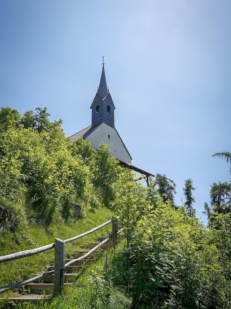 La chiesetta di Sant'Anna a Curon con bellissima Vista sul lago. Costruito in stile gotico tardo, fu inaugurato nel 1521. Contiene un affresco sul parete esterna (1600) di Giorgio Martire. All'interno si trova un altare rinascimentale del 1596 con raffigurazioni della sacra famiglia, l'Annunciazione, Giacomo, Giovanni Battista e Sant'Agnese. Sulla predella è stata trovata una rappresentazione del fondatore HJ Khuen di Belasi insieme alla moglie. Categorie: cultura, Arte sacra