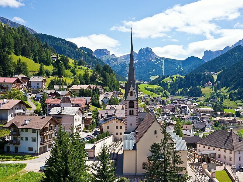 Una cappella dedicata a S. Cristina sorgeva probabilmente già alla fine des XII secolo nel più antico centro pastorale della valle. Della chiesa romanica - citata in una bolla papale del 1342 - resta solo la parte inferiore del campanile, fino alla base del tetto. I lavori di ampliamento e ristrutturazione ne hanno modificato radicalmente l'aspetto. In epoca gotica fu realizzato ad esempio il coro, cui fu aggiunto nel XVI secolo un ossario poligonale. Pregevole l'altare maggiore, realizzato intorno ai 1690 dalla dinastia dei Vinazer. La statua in bronzo di Santa Filomena, un'opera classicisticadi Dominik Mahlknecht, si trova attualmente in Piazza Municipio.