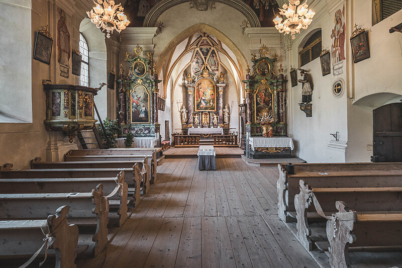 CAPPELLA DELL’OSPEDALE DELLA SANTA TRINITÀ: Eretta nello stesso periodo in cui fu costruito l’ospedale (1456-1473), intorno alla metà del Seicento fu ampliata fino ad assumere la sua struttura attuale, e il 30 gennaio 1655 venne finalmente consacrata dal vescovo di Bressanone Jesse Perkhofer. La chiesa si fonde in un unico corpo architettonico col vecchio ospedale, al quale è collegata da un atrio con volta a crociera. L’arredamento della cappella è in stile barocco.