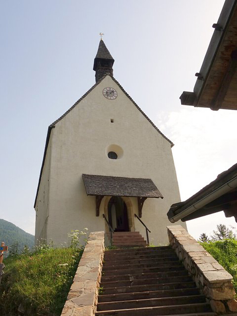 Situata in cima ad un pendio soleggiato a 1640 m, la chiesetta di S. Maurizio fu importante punto di sosta sulla strada per la Val Venosta fin dai tempi delle crociate. In seguito servì come ospizio per i pellegrini in viaggio verso Roma. Oggi S. Maurizio è una meta molto amata dagli escursionisti. Sono sopratutto gli affreschi del XV secolo ad attirare gli appassionati di cultura. Uno sguardo attento va dedicato anche al portale a sesto acuto, ristrutturato in epoca tardo-gotica che con semplici stuccature decora la volta a botte del XVII secolo e all'altare maggiore con un'immagine di S. Maurizio.